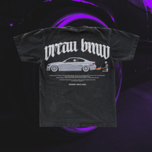 Tricoul oversized vine cu un print care nu lasă loc de interpretări: trei BMW-uri date de-a latu’ prin zăpadă – G20, M3 G80 și E36 – l Exact vibe-ul de sărbători pentru cine preferă miros de benzină în loc de scorțișoară.